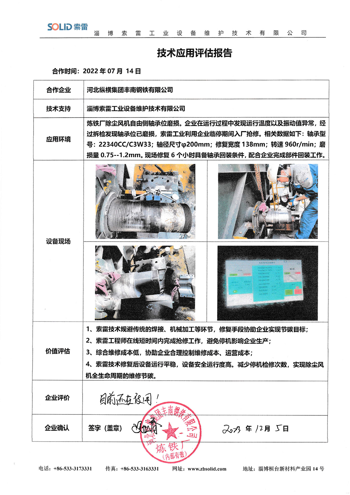淄博索雷工業設備維護技術有限公司(簡稱:索雷工業)始創于2014年,是領先的碳納米聚合物材料開創者及應用服務商。公司業務及經營網絡遍及全國31個省、自治區和直轄市,目前,主營業務隨“一帶一路”已拓展至西亞、東南亞、東亞沿線近十余個國家,已與近3000家企業實現合作和提供過上萬次的在線快修技術支持與可靠性高價值服務。